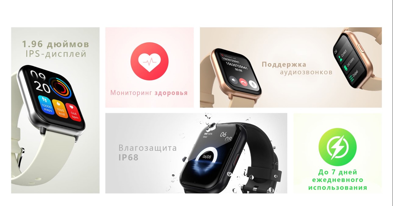 Особенности: ультралегкий алюминиевый корпус; мощный двухядерный процессор Realtek8763EWE; память: ROM 640 КБ + SRAM 600 КБ; Flash 128 Мб; BT музыка, BT камера; USB-кабель с магнитными головками в комплекте; работа на базе ИИ Syntra; 100+ спортивных режимов; влагозащита IP68; синхронизация, поддержка аудиозвонка