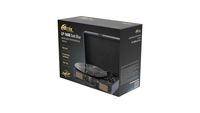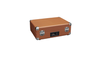 Особенности: оригинальный дизайн в форме чемоданчика ручкой; 3 скорости воспроизведения пластинок: 33 1/3, 45, 78 об/мин; ручки настройки: громкости и переключения режимов; управление тонармом: ручное; Auto Stop; два встроенных полнодиапазонных динамика; аналоговый выход RCA и вход 3.5 мм; привод: ременной (пасик); питание: DC 5В 1А