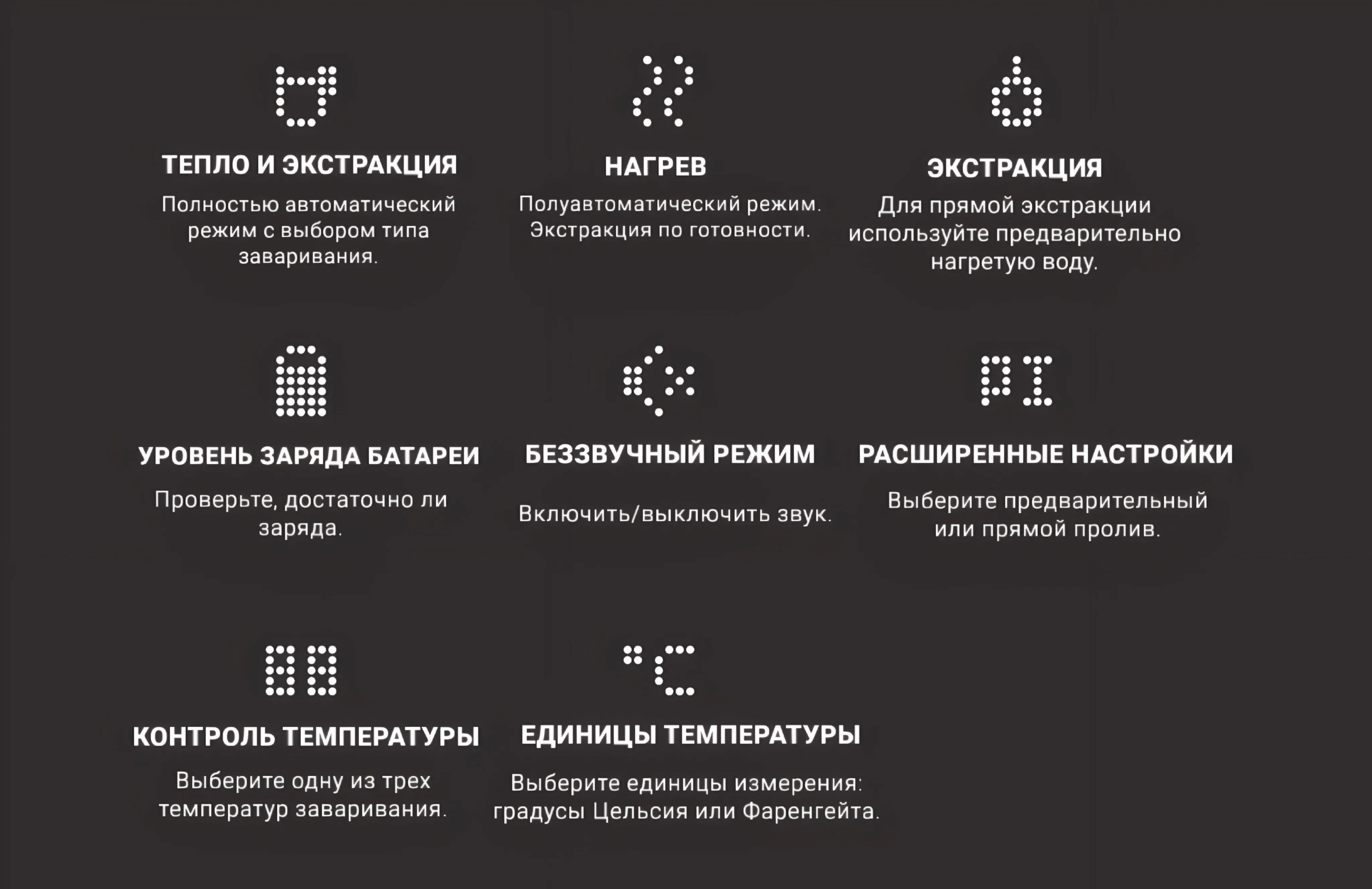 Объем напитка: чашки/чашки эспрессо 300/100 мл