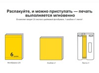 Комплектация: 10 листов 6-дюймовой фотобумаги, 10 листов 3-дюймовой фотобумаги на клейкой основе и 1 лента