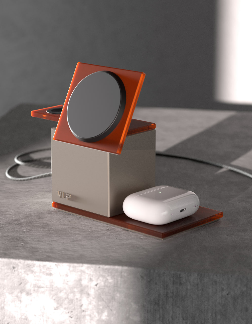 Особенности: беспроводная зарядная станция стандарта Qi2.2 в алюминиевом корпусе с прозрачными элементами из поликарбоната - продолжение архитектурной эстетики коллекции NEO, созданной в коллаборации VLP со Студией Артемия Лебедева; цельноалюминиевый корпус; зарядка до 4х устройств одновременно; мощность 45 Вт позволяет одновременно заряжать до четырёх устройств; кабель из коллекции VLP NEO USB-C, длиной 150 см - входит в комплект; беспроводная зарядная станция идеально совместима с сетевым зарядным устройством VLP NEO 45W (приобретается отдельно); выдерживает более 10 000 сгибаний без потери контакта и скорости передачи;